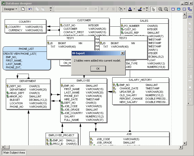 Mit der Erzeugung eines Modells der EMPLOYEE-Datenbank ist es möglich viele der Datenbankdesigner Features zu illustrieren.